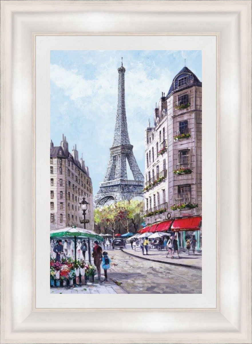 Here, Cisz transports us to the heart of Paris, a city he knows and paints with great affection. The Eiffel Tower rises gracefully behind ornate Parisian buildings, instantly setting the scene in one of the most recognisable locations in the world. In the foreground, a lively urban market unfolds, filled with movement, colour, and the joyful bustle of daily life. This human presence-softly rendered yet full of character-is a hallmark of Cisz's work, reminding us that cities are defined not only by structures, but by the people who bring them to life.